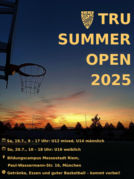 Am 19. und 20. Juli veranstalten wir unser großes Turnier TRU SUMMER OPEN 2025 für die Altersklassen u12 mixed, u14 männlich und u16 weiblich!